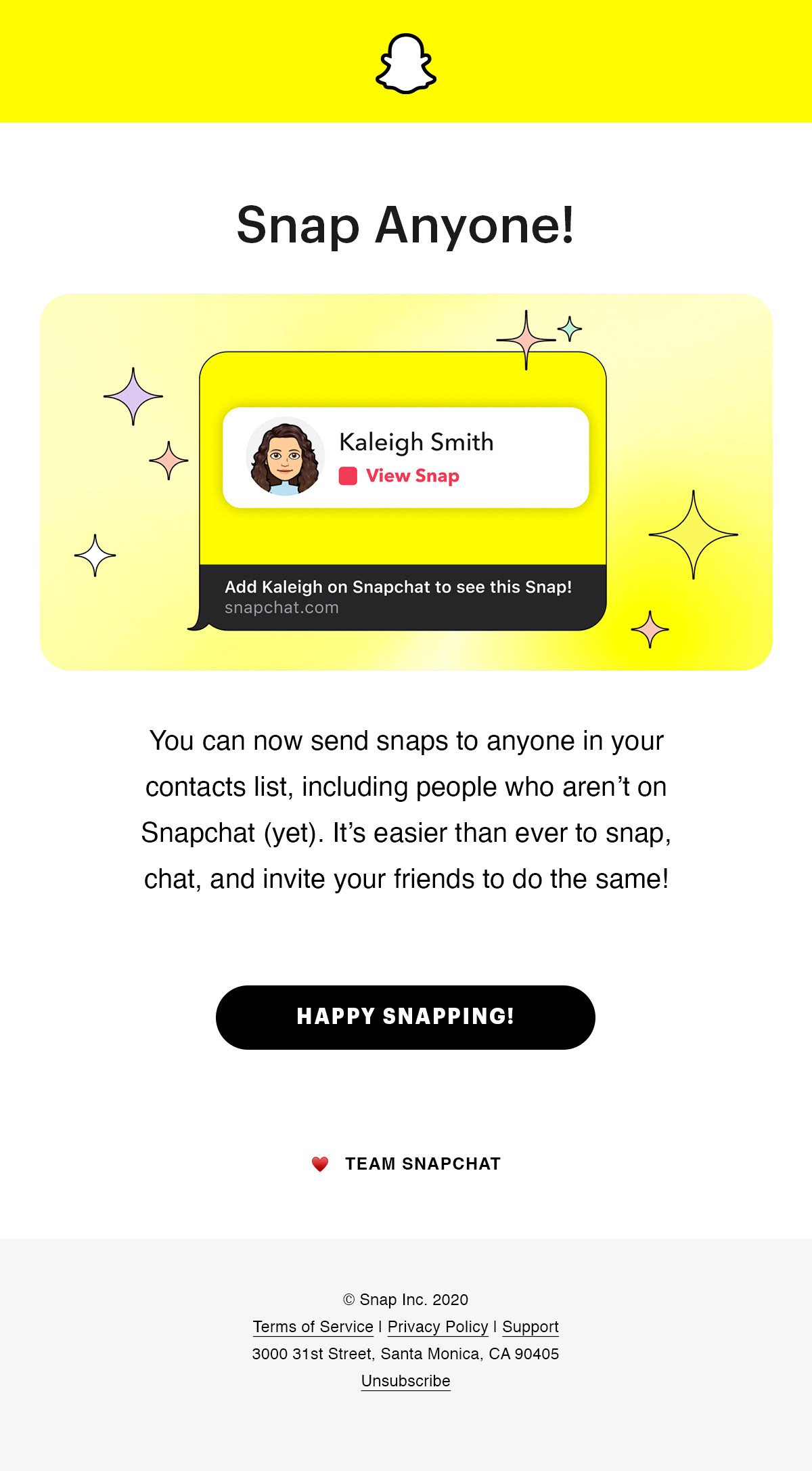 When a new feature launches on Snapchat, it is the marketing team’s responsibility to get the word out. Snap Anyone allows users to send snaps to friends who are not on Snapchat through SMS.